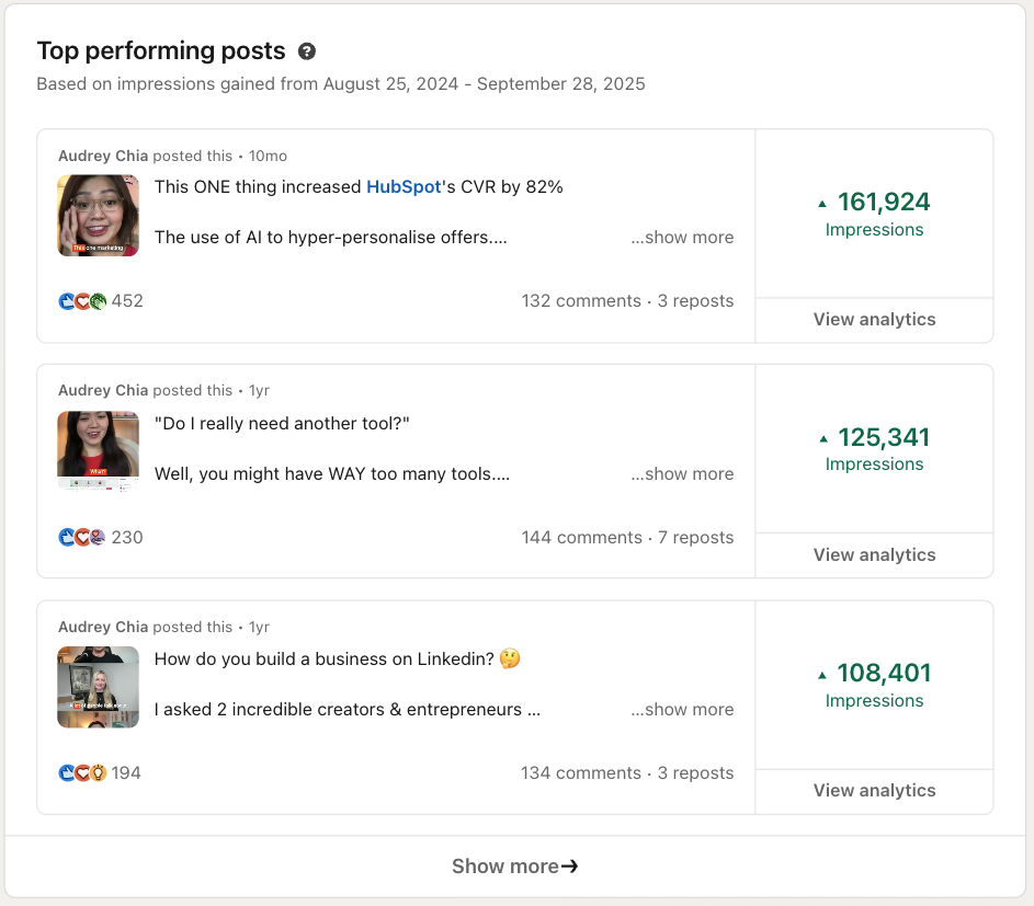 While Instagram and YouTube are oversaturated with creators, only about 3% of LinkedIn’s 1 billion members post content regularly which means far less competition and a much higher chance for your voice to stand out.