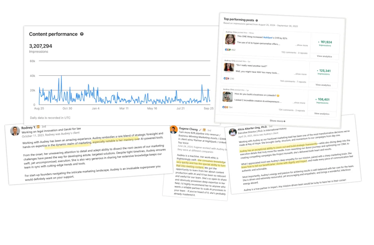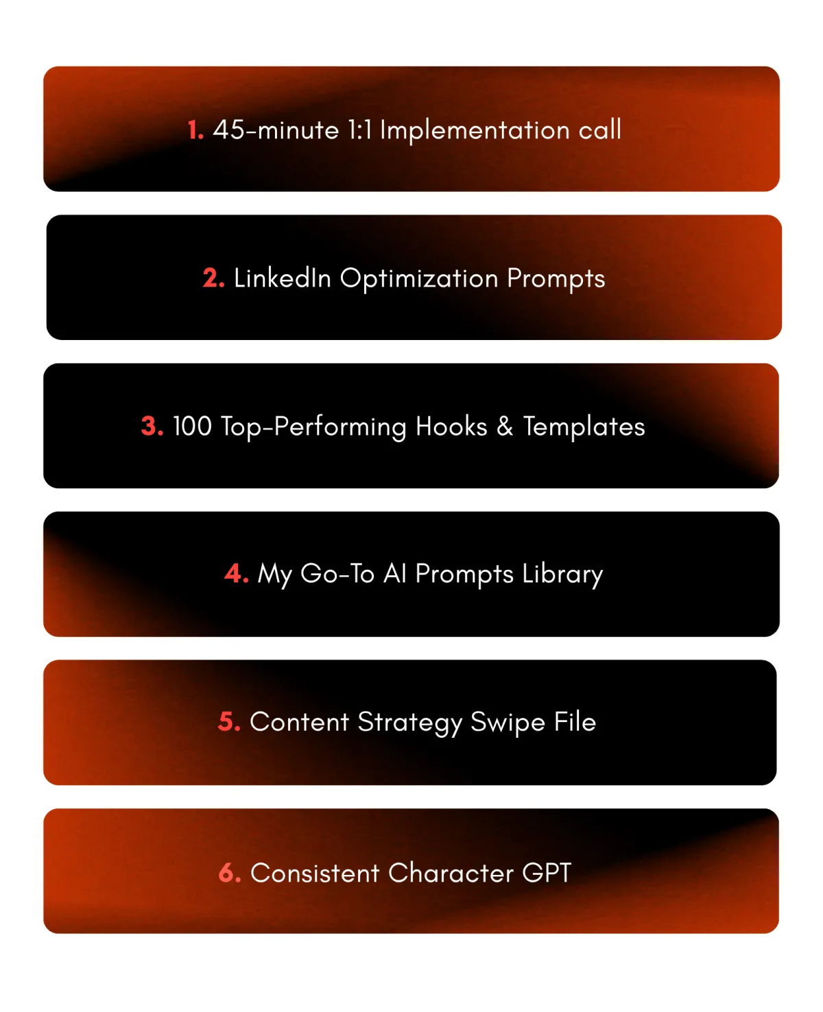 By the end of the 21-day challenge, you'll have a revamped profile, 3-month content strategy and AI-powered workflows to set up for success.