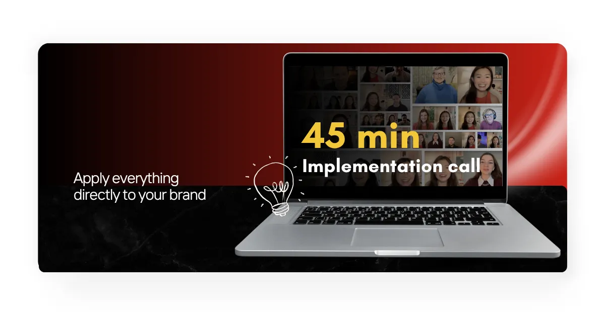A private 45-minute session to apply everything directly to your brand so you leave with a clear plan, aligned messaging, and ready-to-launch content.